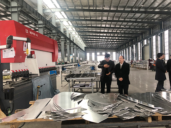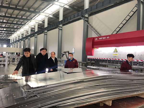 隨后,考察團參觀了公司的生產車間,企業負責人介紹了各類生產工藝流程、圍繞節能環保、輕量化、抗腐蝕、防火、高承壓等特性的下一代室內外幕墻裝飾新型材料的批量化研發及制造。考察團領導高度贊揚了公司的企業文化,對我司在產業工作中付出的努力與取得的成就給予了充分肯定。并鼓勵我司再接再厲實現新跨越、新發展!